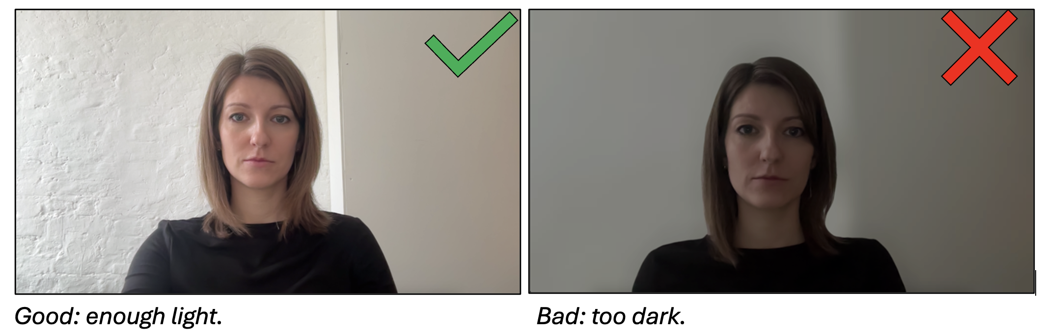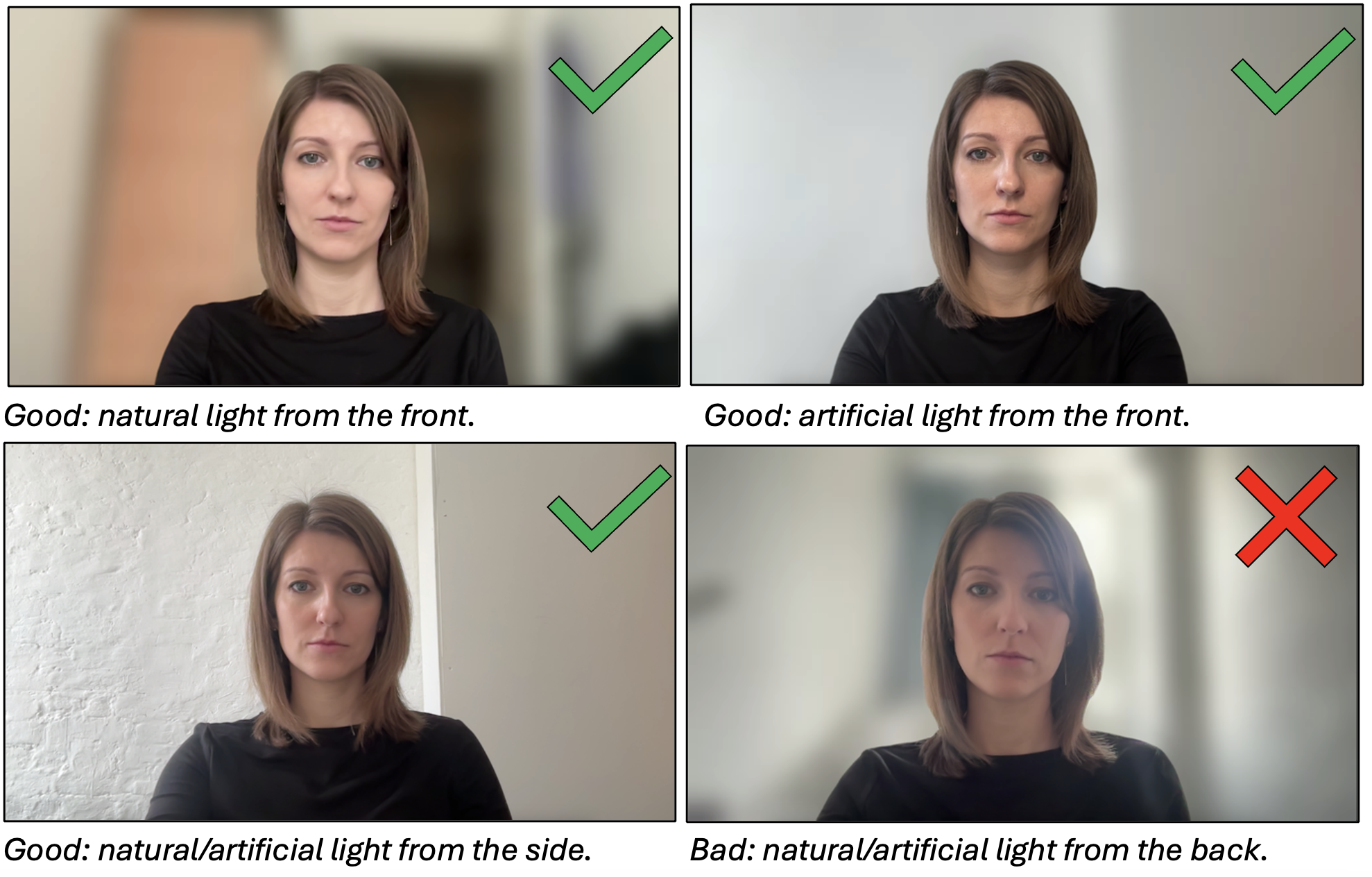 □ I will be well positioned in front of the camera and the lighting conditions around me will be constant and good (details below).