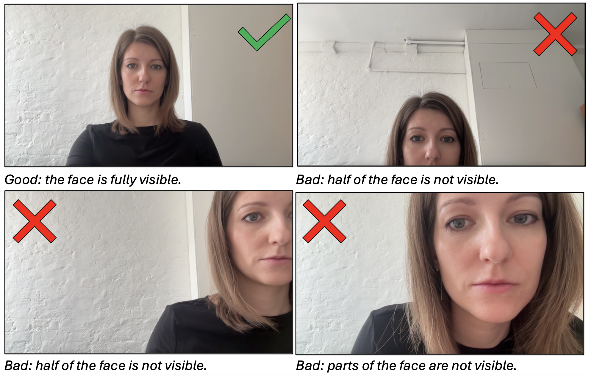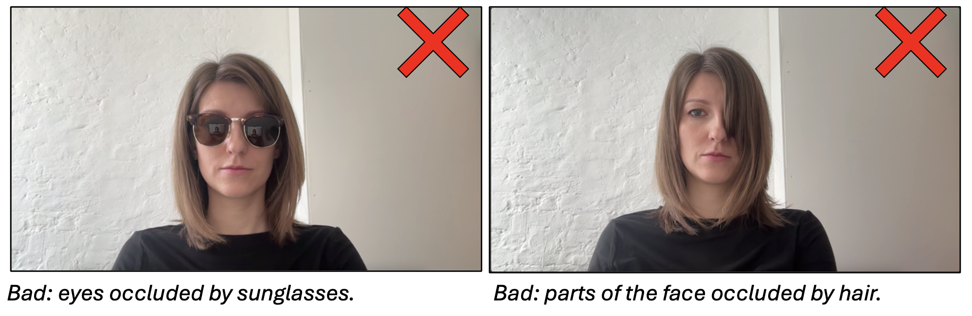 5. Nothing occludes a big part of your face (e.g., sunglasses, a big hat, hair on the face) (VERY IMPORTANT!)